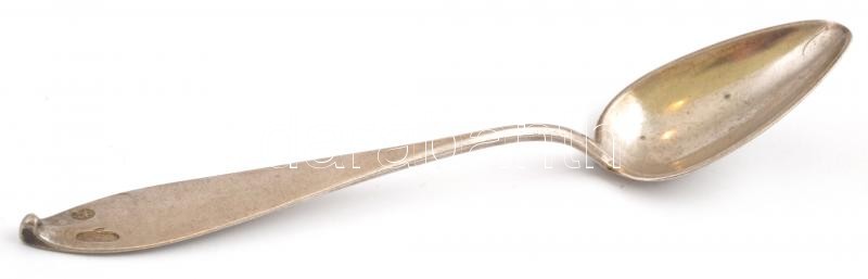Ezüst (Ag) kanalak (6 db), és ezüst (Ag) villák, és 1 db ezüst (Ag) merőkanál, a merőkanalat leszámítva monogramosak, jelzettek, kivéve: a merőkanál jelzés nélkül, h: 18 cm, 22 cm, és 24 cm, nettó: 848 gr. és ezüst (Ag) nyelű kések, monogramosak, jelzettek, 3 db, h: 22 cm, bruttó: 161 gr
