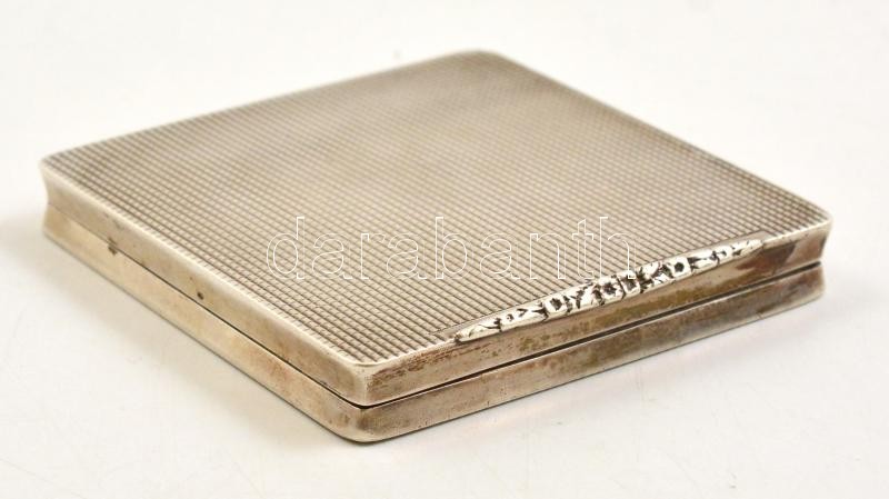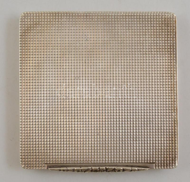Leírás: Ezüst cigarettatárca geometrikus díszítéssel 100 g 8x8 cm / Silver cigarette tray