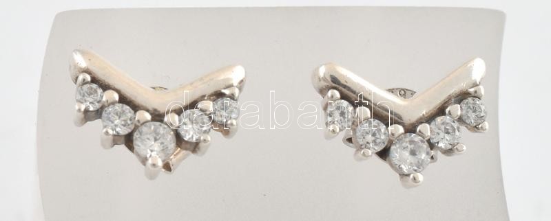 Leírás: Ezüst(Ag) "V" alakú köves fülbevalópár, Pandora jelzéssel, bruttó: 2,01 g