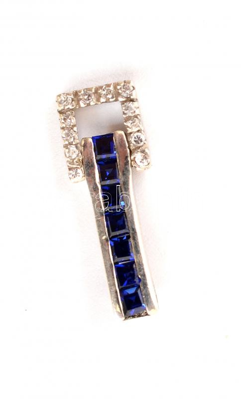 Leírás: Ezüst(Ag) medál, kék-fehér kővel, jelzett, 2x0,8 cm, bruttó: 1,84 g