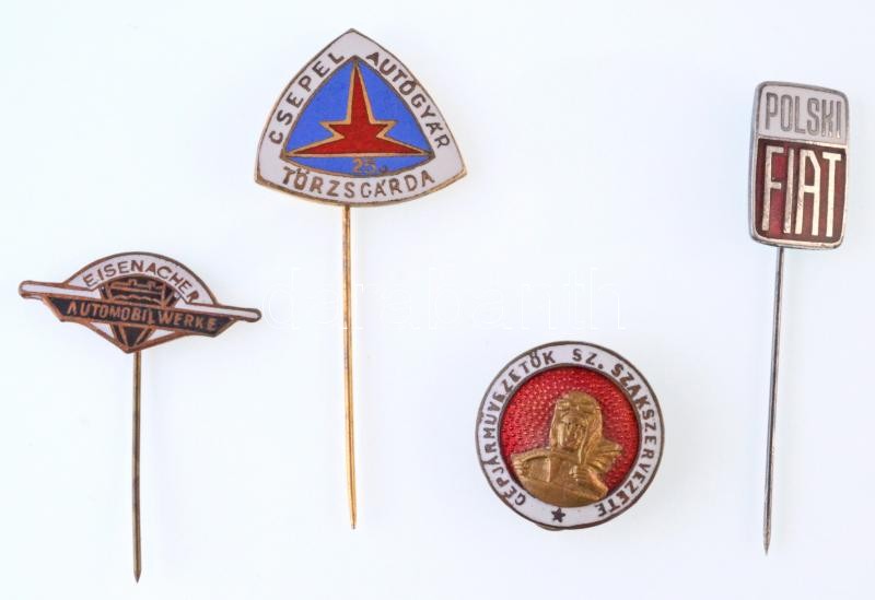 Leírás: 1926. "Gépjárművezetők Szabad Szakszervezete" gomblyukjelvény + "Csepeli Autógyár, Polski Fiat, Wartburg" zománcozott jelvény (3xklf) T:1-2