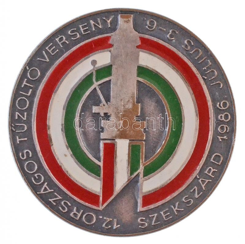 Leírás: 1986. "12. Országos Tűzoltó Verseny - Szekszárd 1986. június 3-6." festett, ezüstözött Br jelvény T:1-,2