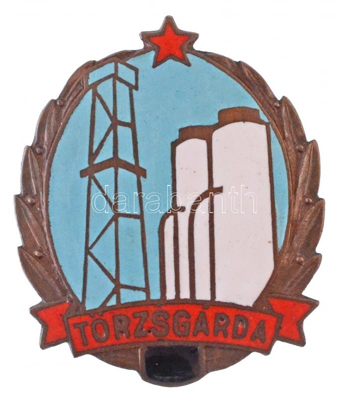 ~1950. "Vegyipari Törzsgárda" zománcozott fém jelvény, hátol... https://www.darabanth.com/hu/377-Gyorsarveres/377.0/Numizmatika/Falerisztika-Kituntetesek-jelvenyek~1500018/7E1950-Vegyipari-Torzsgarda-zomancozott-fem-jelveny-hatoldalan-vesett-szamozassal-3724~II2196144