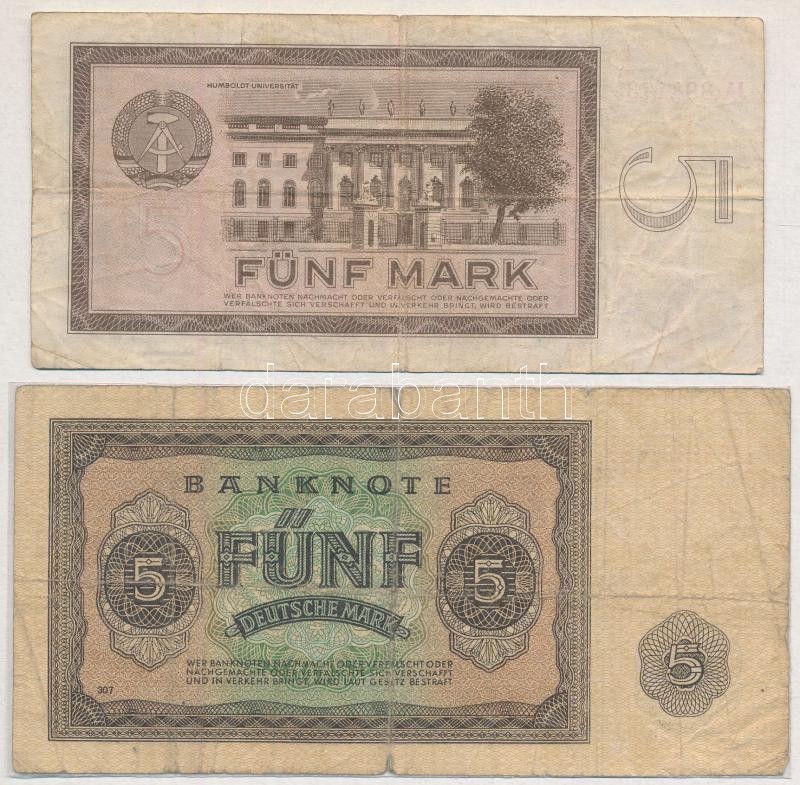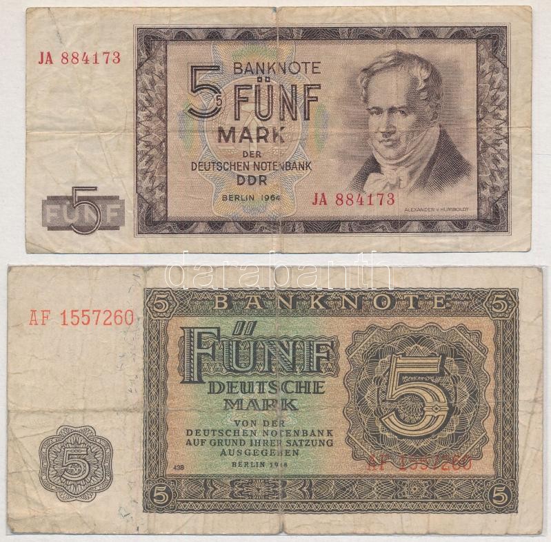 GDR 1948. 5 Mark + 1964. 5 Mark C:F Kr... https://www.darabanth.com/hu/377-Gyorsarveres/377.0/Numizmatika/Kulfoldi-bankjegyek~1500013/NDK-1948-5M-plus-1964-5M-TIII--GDR-1948-5-Mark-plus-1964-5-Mark-CF-Krause2311-22~II2198112