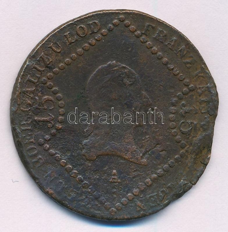Leírás: Ausztria 1807A 15kr Cu "I. Ferenc" T:2-,3 hajlott lemez, patina, ph.