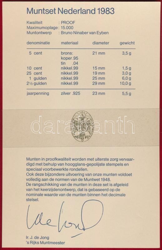 Leírás: Hollandia 1983. 10c-2 1/2G (5xklf) + "'Srijks Munt" zseton díszkiadásban T:PP kis patina