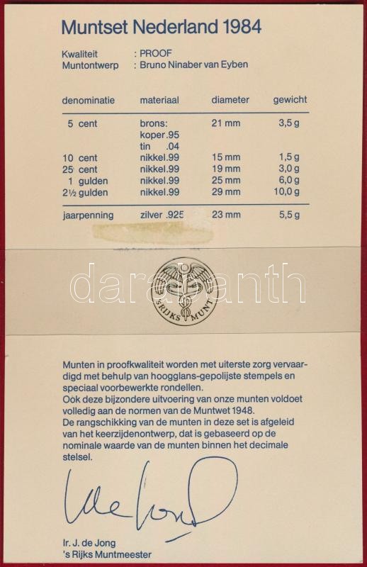 Leírás: Hollandia 1984. 10c-2 1/2G (5xklf) + "'Srijks Munt" zseton díszkiadásban T:PP kis patina