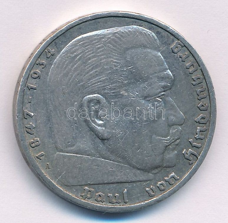 ... https://www.darabanth.com/hu/377-Gyorsarveres/377.0/Numizmatika/Kulfoldi-fem-es-ezustpenzek~1500014/Nemet-Harmadik-Birodalom-1938A-5M-Ag-Hindenburg-T2-karc-German-Third-Empire-1938A-5-Reichsmark-~II2216998