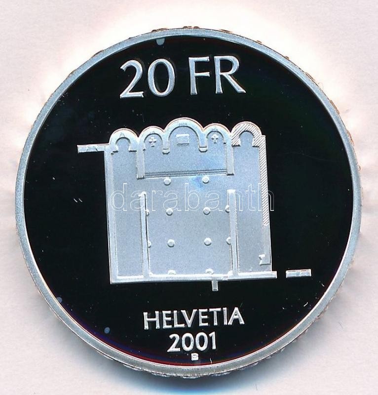 Svájc 2001B 20Fr Ag "Mustair-i kolostor" eredeti díszdobozban német és francia nyelvű tanúsítvánnyal T:PP