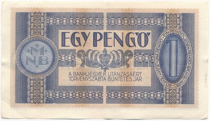 Leírás: 1938. 1P csillagos sorozatszám "H 759 085590" T:II- / Hungary 1938. 1 Pengő "H 759 085590" serial number with star C:VF Adamo P1A