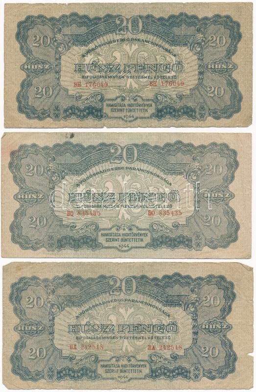 Leírás: 1944. 20P "A Vöröshadsereg Parancsnoksága" (3x) T:III,III- Adamo P45