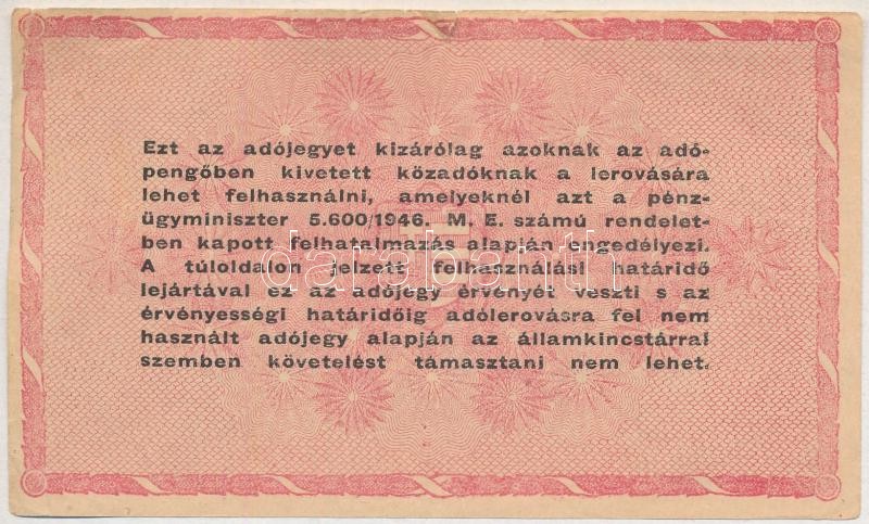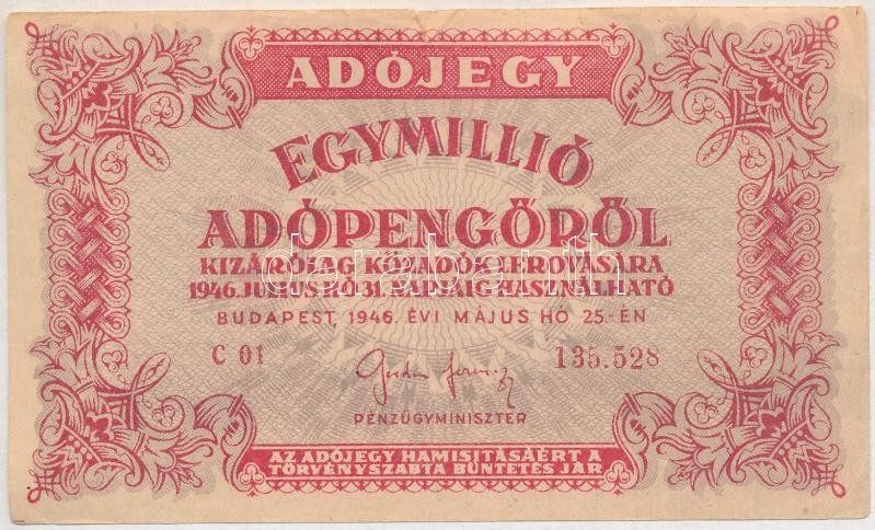 Leírás: 1946. 1.000.000AP 6 sorszámjellel és fordított címerrel T:III kis szakadás Adamo P53A