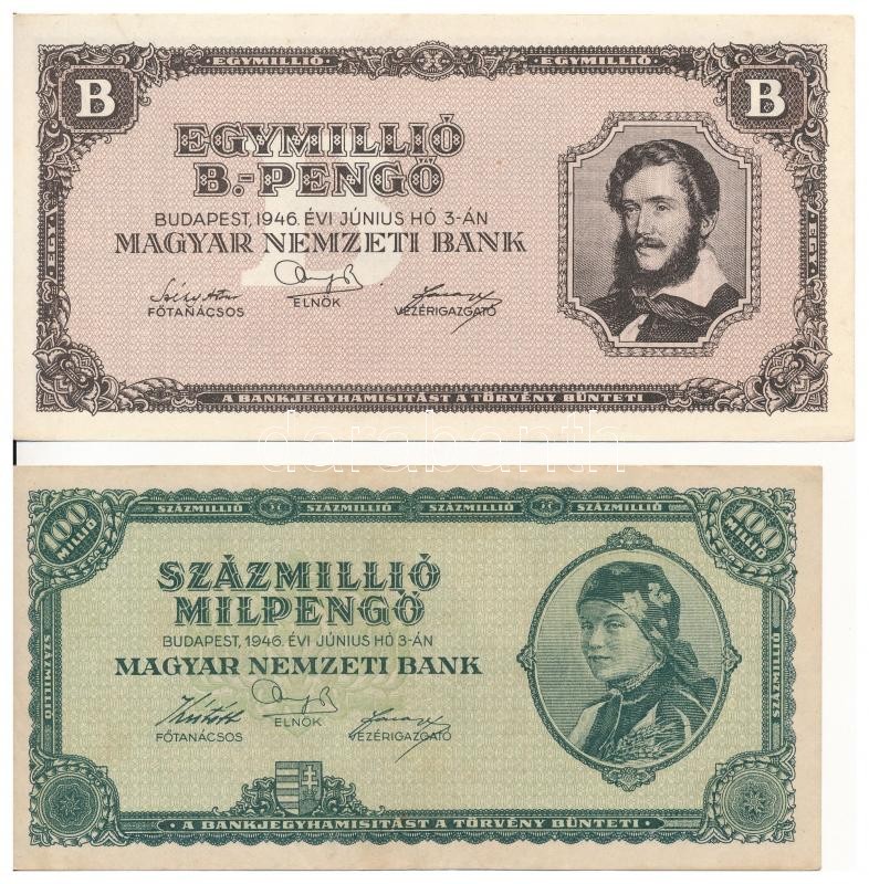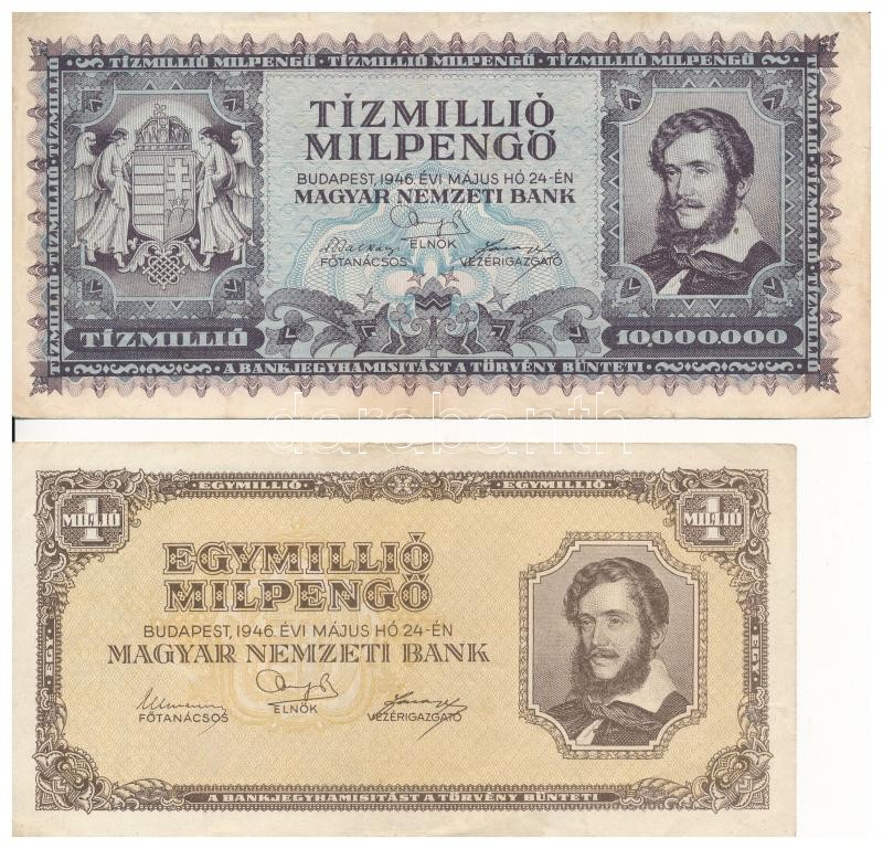 Leírás: 1946. 1.000.000MP + 10.000.000MP + 100.000.000MP + 1.000.000BP T:I-,III