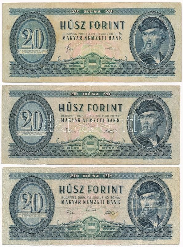 Leírás: 1969-1980. 20Ft (3xklf) T:III Adamo F15,F16,F17