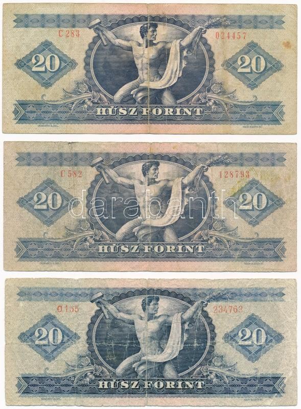 1969-1980. 20Ft (3xklf) T:III Adamo F15,F16,F17 https://www.darabanth.com/hu/377-Gyorsarveres/377.0/Numizmatika/Magyar-bankjegyek~1500007/1969-1980-20Ft-3xklf-TIII-Adamo-F15-F16-F17~II2194398