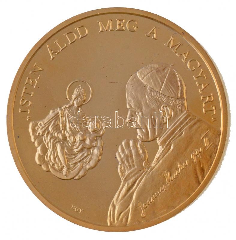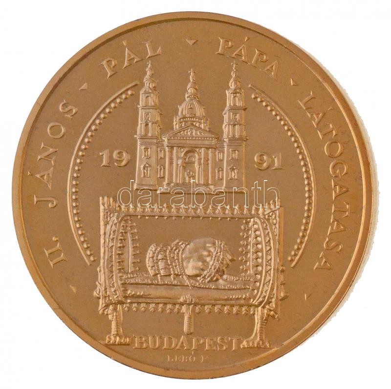 Bognár György (1944-) / Lebó Ferenc (1960-) 1991. "II. János Pál pápa látogatása - Budapest" aranyozott fém emlékérem műanyag tokban (65mm) T:1 (eredetileg PP)