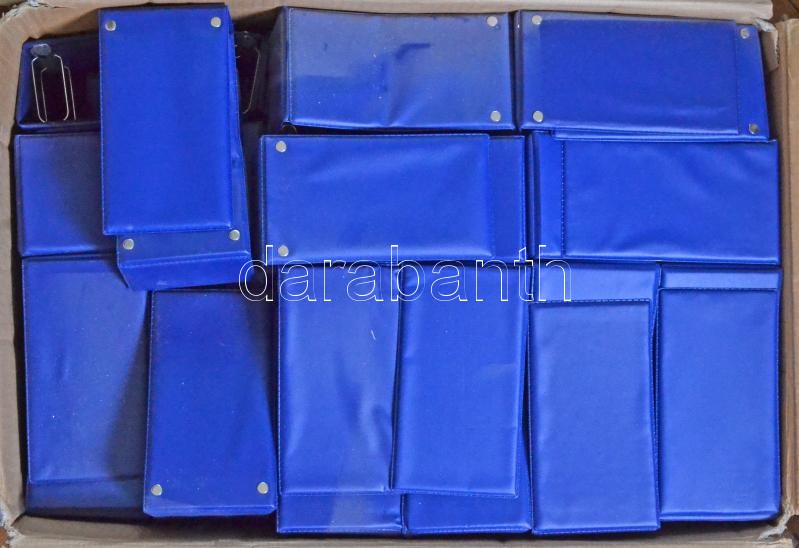 Leírás: Nagy doboznyi (~100db) kisméretű (~170x85mm), műbőr éremtartó album, lapok nélkül. Új állapotban, de tárolás alatt porosodtak.