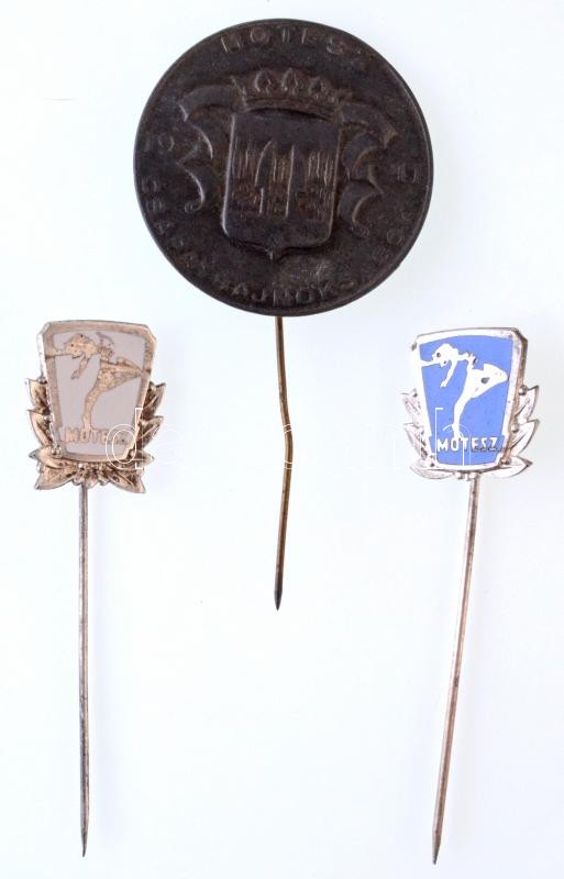 Leírás: 1941. "MOTESZ (Magyar Országos Tornaegyletek Szövetsége) Csapatbajnokságok" hadifém jelvény + 2xklf "MOTESZ" zománcozott fém jelvény T:1-2