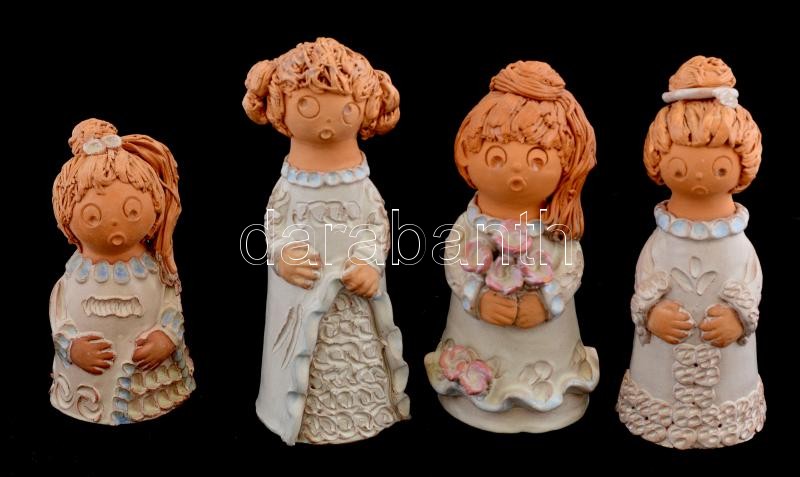 Antalfiné Szente Katalin (?- ): Kislányok, 4 db figurális kerámia, mázas kerámia, jelzett, az egyiken hajszálrepedéssel, a többi hibátlan, m:15,5 cm és 11,5 cm közötti méretben