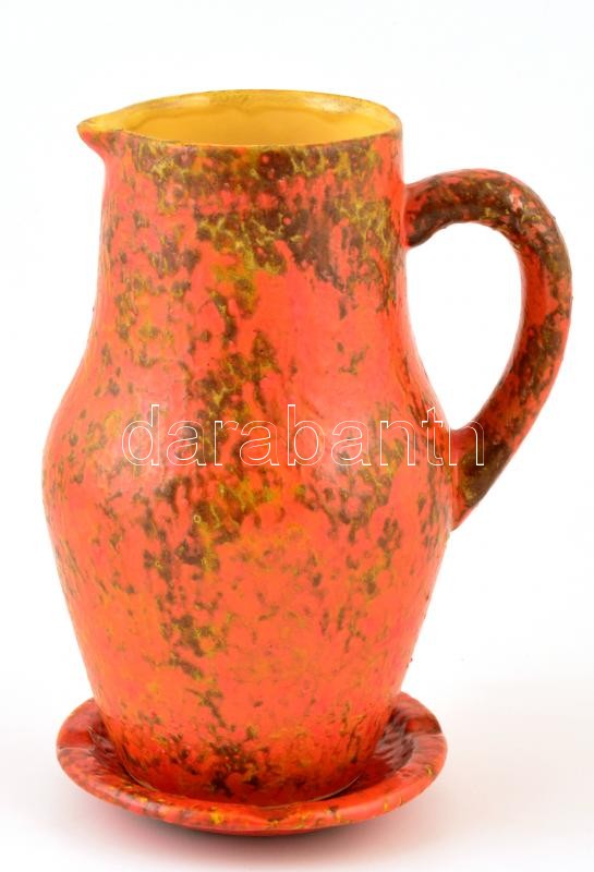 Leírás: Tófej kancsó és hamutálka, mázas kerámia, jelzett, apró kopásnyomokkal, m: 22 cm, d:12 cm