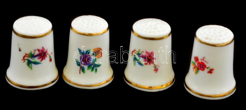 Leírás: Hollóházi porcelán 4 db gyűszű, matricás, jelzett, egyiken kis hajszálrepedés, m: 2,5 cm
