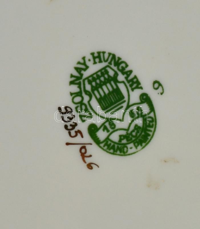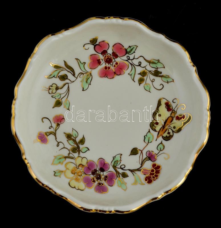 Leírás: Zsolnay pillangó mintás asztali szett: váza (m:20 cm), ékszerdoboz (7,5x7,5 cm), tálka (d:12,5 cm). Kézzel festett jelzett, hibátlan.