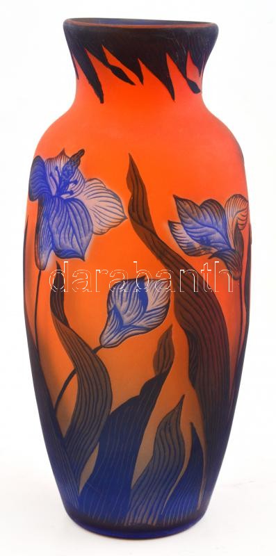 Leírás: Gallé jelzéssel virágmintás váza, többrétegű, apró kopásokkal, m: 27,5 cm