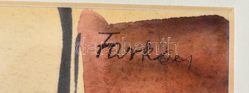 Leírás: Farkas jelzéssel: Utcarészlet. Akvarell, papír. Üvegezett fa keretben, 31,5x26 cm