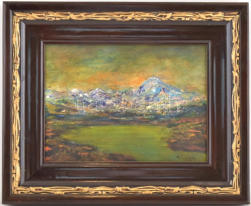 Leírás: Mednyánszky jelzéssel: Hegyvidéki táj. Olaj, karton, fa keretben, 23x31 cm