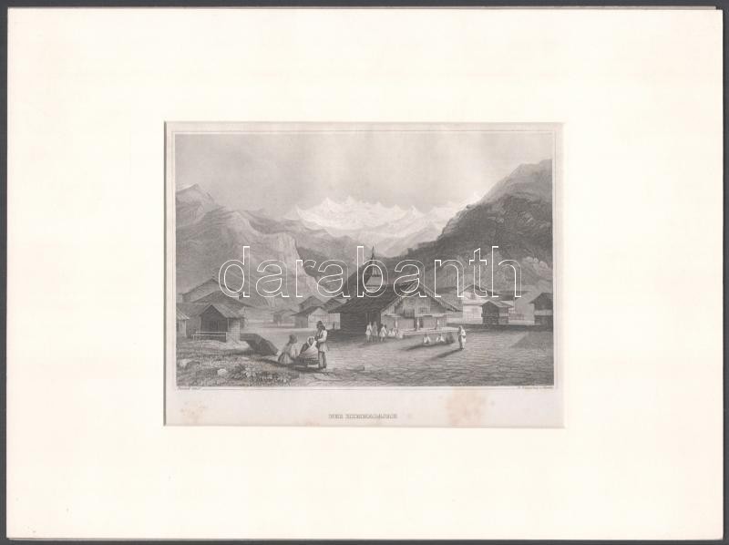 Leírás: Der Himmalajah (Himalája). Acélmetszet, papír, kissé foltos, paszpartuban, 11x16,5 cm