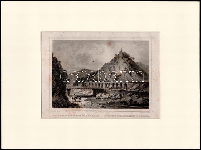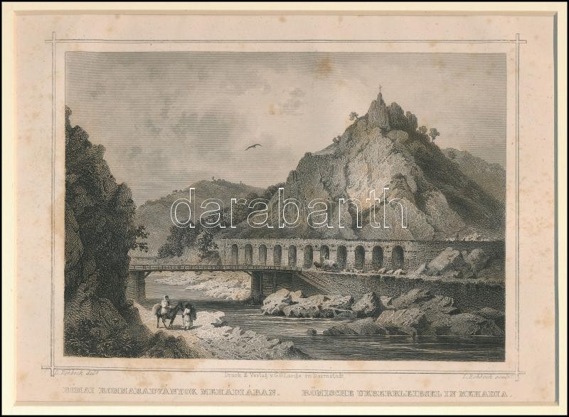 cca 1840 Ludwig Rohbock (1820-1883): Római Rommaradványok Mehádiában, Pest, Lauffer és Stolp, (Darmstadt, G. G. Lange-ny.), acélmetszet, félig leragasztott paszpartuban, foltos, 14×19 cm