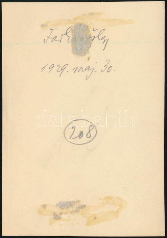 1929 Kinszki Imre (1901-1945) budapesti fotóművész hagyatékából, a szerző által feliratozott vintage fotó (Farkasvölgy, ez a szerző 208. sz. felvétele), 8,4x6 cm