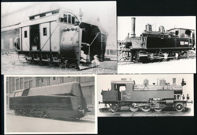 Leírás: Régi mozdonyok, 4 db modern előhívás, 8,5×11,5 és 11×17 cm közötti méretekben