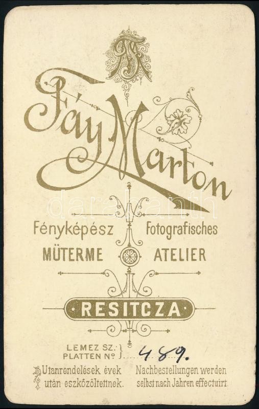 cca 1890 Férfiportré, keményhátú fotó Fáy Márton resicai műterméből, 1... https://www.darabanth.com/hu/378-Gyorsarveres/378.0/Fotomuveszet/Foto~500021/cca-1890-Ferfiportre-kemenyhatu-foto-Fay-Marton-resicai-mutermebol-10-5C3976-5-cm~II2226826