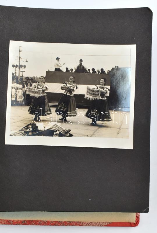 cca 1960 Magyar néptáncegyüttes pekingi útjáról készült, kissé megviselt fotóalbum, sok kínai és Mao képpel. 23 db fotóval / Beijing, China 23 photos of a Hungarian folk group. Images of Mao