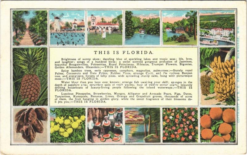 Florida, church, ship, fruits, https://www.darabanth.com/hu/378-Gyorsarveres/378.0/Kepeslapok/Amerikai-Egyesult-Allamok~1500018/Florida-church-ship-fruits-~II2231854