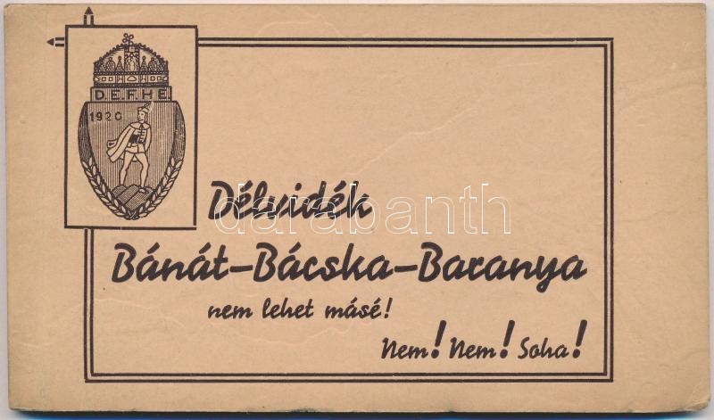 Leírás: Délvidék. Bánát-Bácska-Baranya. Nem lehet másé! Nem! Nem! Soha! Irredenta képeslapfüzet 20 képeslappal. kiadja a Délvidéki Egyetemi és Főiskolai Hallgatók Egyesülete / Hungarian Southern Land. Irredenta postcard booklet with 20 postcards s: Lamoss