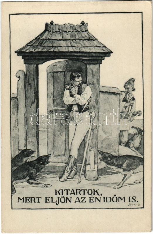 Leírás: Kitartok, mert eljön az én időm is. Kiadja Magyarország Területi Épségének Védelmi Ligája / Hungarian irredenta propaganda art postcard s: Sándor B.