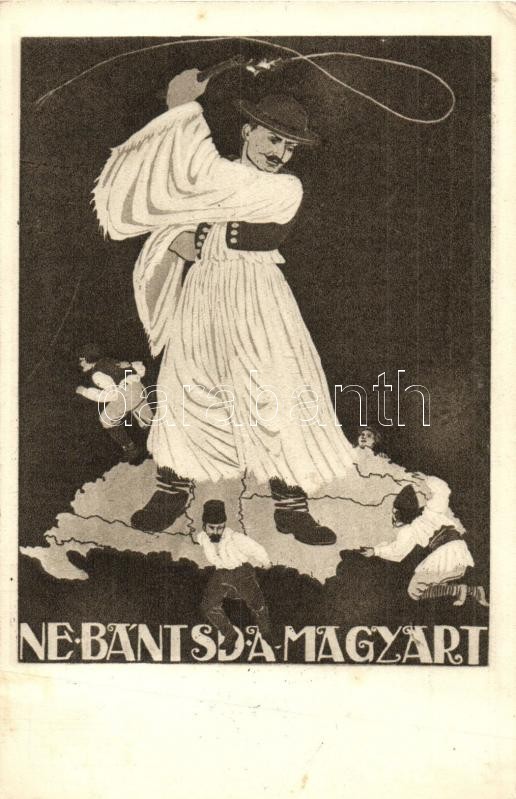 Leírás: Ne bántsd a magyart. Kiadja a "Szózat" Magyarország Területi Épségének Védelmi Ligája napilapja / Hungarian irredenta propaganda s: Arkay Lidi (EK)