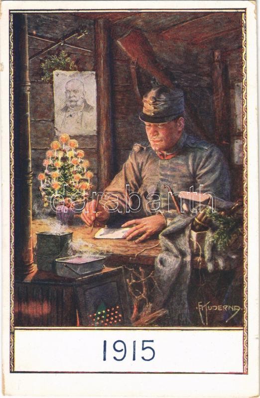 1915 A K.u.K. hadsereg katonája 1915 karácsonyán / WWI Soldier of the Austro-Hungarian K.u.K. Army, Christmas s: Kuderna + "Mannschafts- u. Fuhrenreserve des K.u.K. 1. Armee-Etappen-Kommando"