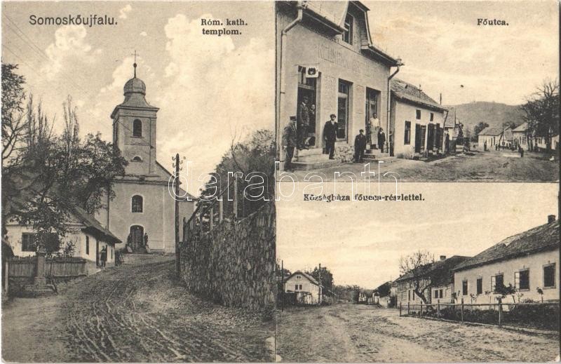Leírás: 1928 Somoskőújfalu, Római katolikus templom, Községháza, Fő utca, Neumann Árpád üzlete