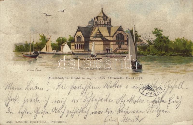 Leírás: 1897 (Vorläufer) Stockholm, Utställningen Officiella Brefkort, Turistpaviljongen / exhibition, tourist pavilion. Axel Eliassons Konstförlag litho (EK)