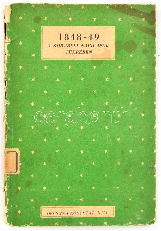 Leírás: 1848-49 A korabeli napilapok tükrében. Szerk.: Bay Ferenc. Bp., 1943, Officina. Kiadói kartonált papírkötés.