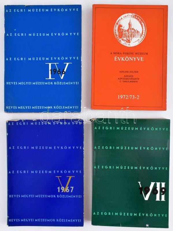 Bakó Ferenc (szerk.): Az egri múzeum évkönyve IV-V. Eger, 1966, Vizy Ottó. + Bakó Ferenc (szerk.): Az egri múzeum évkönyve VII. Eger, 1970, Bakó Ferenc. + Szelesi Zoltán: Szeged képzőművészete. Móra Ferenc Múzeum évkönyve. Szeged, 1975, Móra Ferenc Múzeum. Kiadói papírkötésben, kiadói védőborítóban, szerző által dedikált.