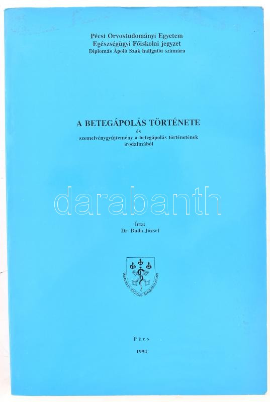 Buda József: A betegápolás története és szemelvénygyűjtemény a betegápolás történetének irodalmából. Pécs, 1994., POTE Egészségügyi Főiskola. Kiadói papírkötés, javított címlappal. Megjelent 1500 példányban.