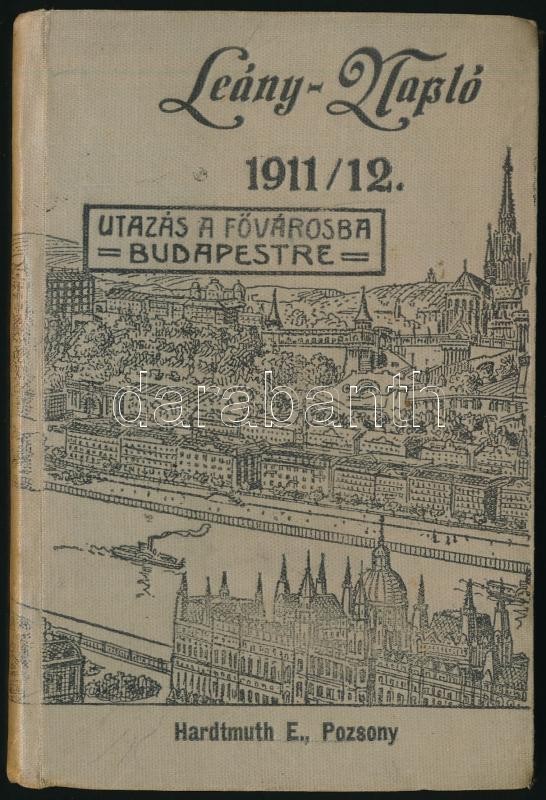 1911 Leány-napló az 1911/1912. iskolai évre. Benne: Hogyan nézzük meg Budapestet 3 nap alatt? (fekete-fehér szövegközti Budapest fotókkal, 83-119 p.) Bp., 1911., Szénássy Béla, Cs. és Kir. Udvari Papírnemű és "Árpád" Rajzeszközgyára, 158 p.+1 (színes Budapest térképpel, 25x16 cm) t. Kiadói illusztrált egészvászon-kötés, kis kopásnyomokkal, két laza lappal, néhány ceruzás bejegyzéssel.