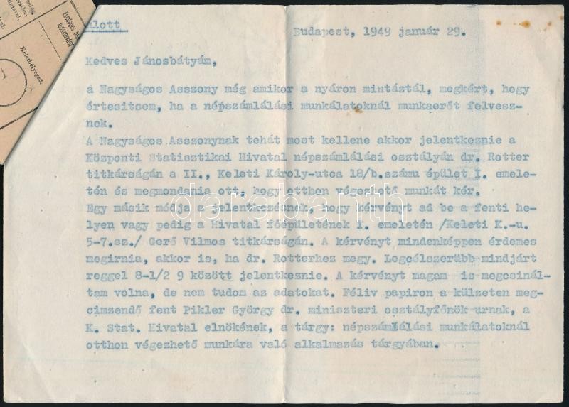 Leírás: 1949 zsákodi Csiszér János (1883-1953) szobrászművész gépelt autográf levele aláírásával, valamint kézzel írt levele művéről készült képeslapon.