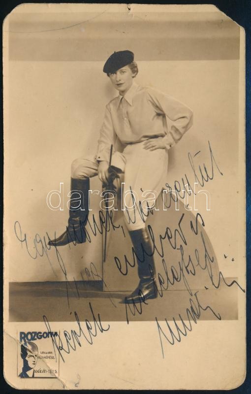 Leírás: Muráti Lili (1912-2003) színésznő aláírása az őt ábrázoló képen