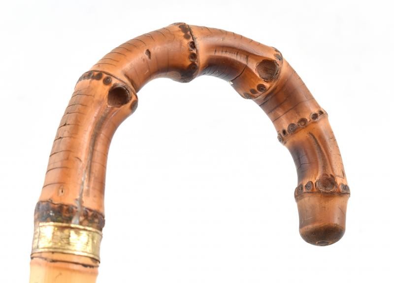 Leírás: Bambusz sétabot, javítás nyomaival, h: 86 cm