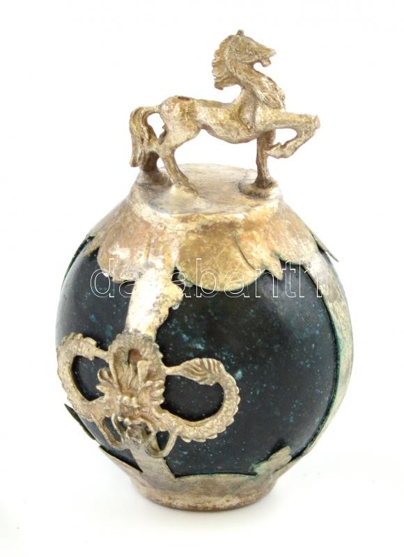 Jáde gömb lovas fém foglalatban, m: 5,5 cm